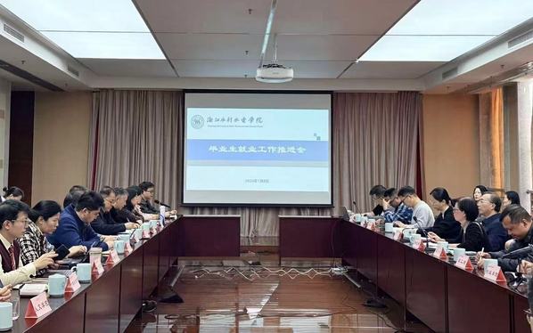 1月8日下午,学校2026届毕业生就业工作推进会在钱塘校区召开。校长万健出席会议并讲话。校党委副书记唐远彤主持会议。各二级学院院长、教学副院长、分管学生工作副书记、就业工作辅导员,相关职能部门负责人参会。